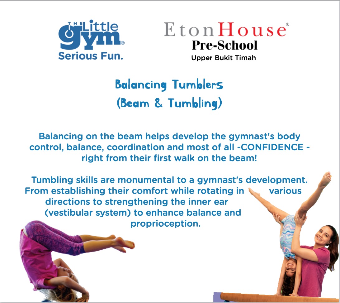 Tumbling skills are monumental to a gymnast’s development. From establishing their comfort while rotating in various directions to strengthening the inner ear (vestibular system) to enhance balance and proprioception.