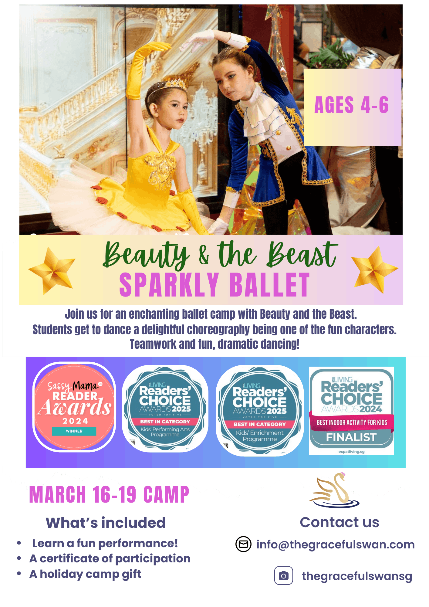 This enchanting camp is perfect for children who love to dance and sparkle—no prior ballet experience required. ✨