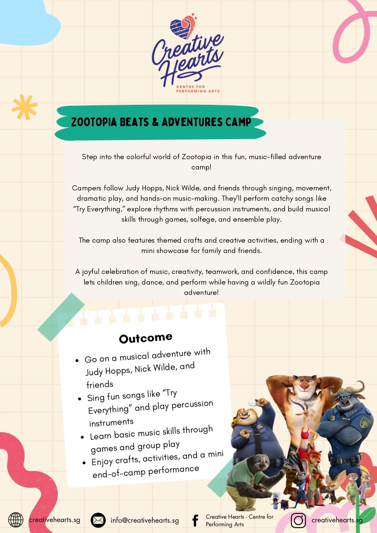 camp! Campers follow Judy Hopps, Nick Wilde, and friends through singing, movement, dramatic play, and hands-on music-making.