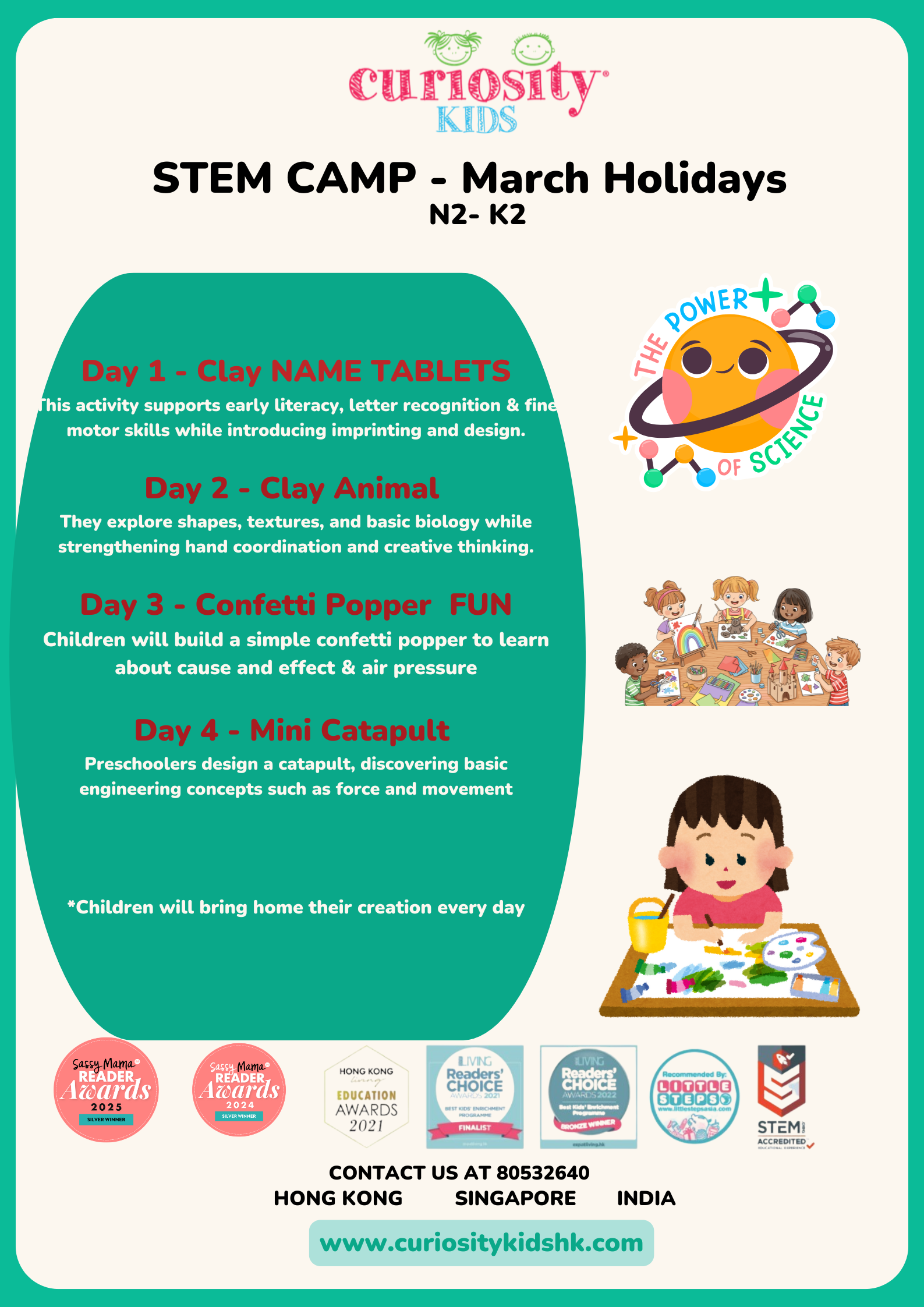 The camp also features themed crafts and creative activities, ending with a mini showcase for family and friends.